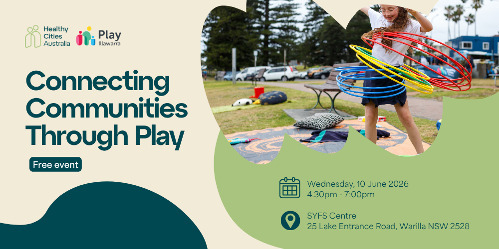 Wednesday, 10th June Connecting Communities Through Play 2026 On the eve of United Nations International Day of Play, join Play Passionates for an evening dedicated to exploring the transformative role of play in building vibrant, connected, and thriving communities. This event will highlight ways how play can be used as a practical strategy to enhance wellbeing, foster social connections, and support healthier lifestyles. This is your chance to collaborate and explore creative ways to integrate play into community spaces, urban planning, and local initiatives. Our panel of speakers include: Adam Towney: Owner and Creator of AT Culture Dylan Cliff: Associate Professor and Researcher at ARC Centre of Excellence for the Digital Child Emma Rattenburg: Early Childhood Teacher, Registered Play Therapist, and content producer ‘Emma In Early Childhood’ Natalia Krysiak: Founder & Creative Lead Cities for Play Sam Crosby: Education and Outreach Specialist at Wollongong City Council based at the Wollongong Botanic Garden Robyn Monro Miller: CEO Play Australia Event Details: The event will include Welcome to County and young people speaking on their experiences of Play plus Quill Darby, Junk Yard Rascal facilitating playful connections. Book your spot today – don’t miss this inspiring conversation and connecting with passionate people and communities through Play! Map Wednesday, 10th June, 4:30pm-7:00pm Southern Youth and Family Services Auditorium, Warilla NSW 2528 $FREE Get tickets Share this event
